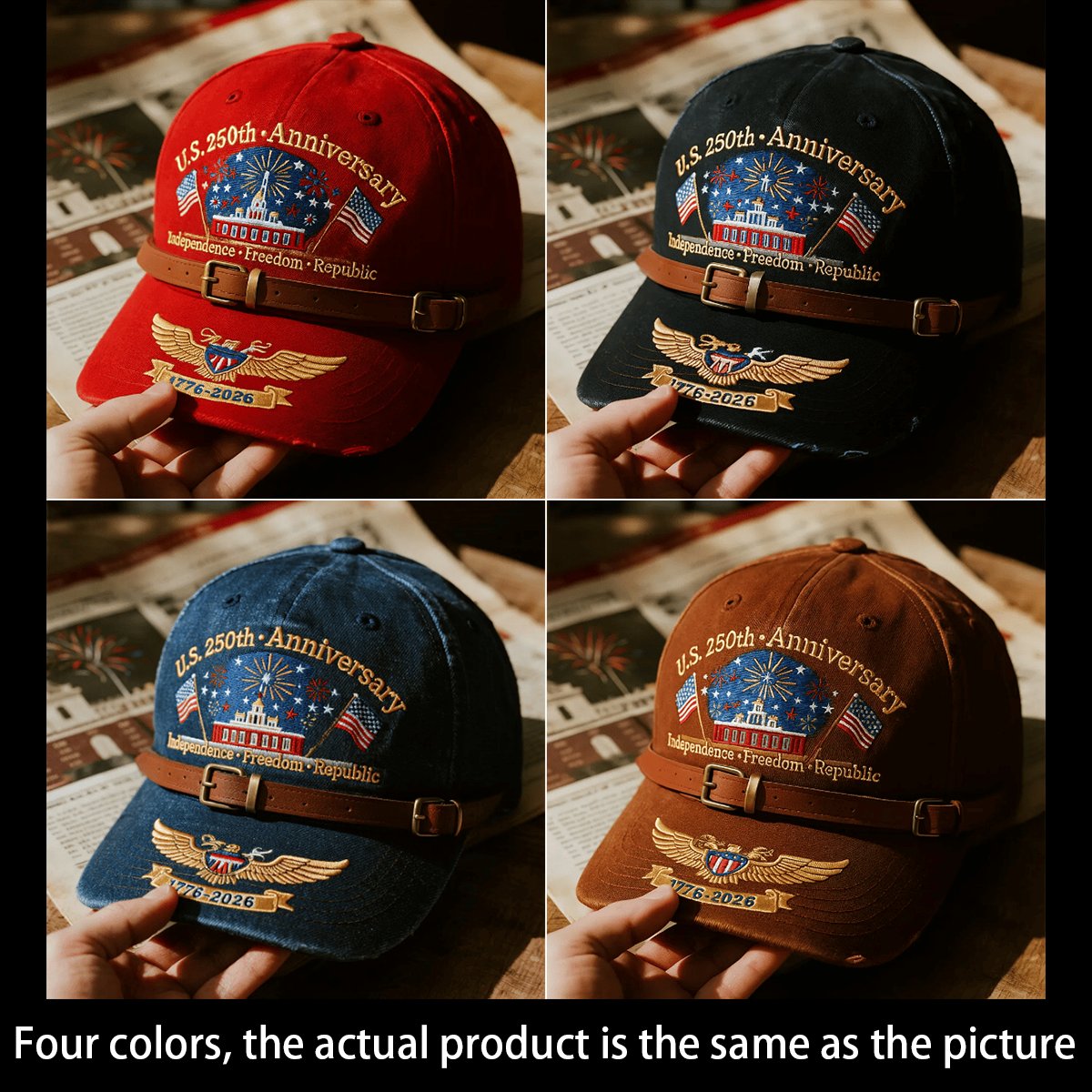 Package Includes: 1 × U.S. 250th Anniversary "Independence, Freedom, Republic" Retro Washed Baseball Cap 🎩